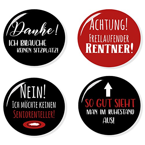 Die beste Website zum Erwerb von 4er buttons set rentner senioren witziges geschenk zur rente ruhestand extragross 59 mm befindet sich derzeit auf der Website von Amazon