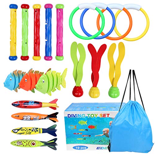 Kennen Sie schon die 19 stücke pool tauchen spielzeug set tauchringe tauchen toypedo tauchstöcke aquatic dive balls schwimmen fisch schwimmbad spielzeug für kinder mit tragetasche?