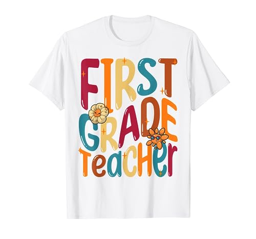 Die beste Website zum Erwerb von First grade teacher back to school 1st grade groovy retro t-shirt befindet sich derzeit auf der Website von Amazon