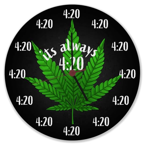 It's always 420 kiffer wanduhr mit cannabis blatt uhr für kiffer mit bekanntem kifferspruch als gastgeschenk für echte stoner die ihr weed lieben