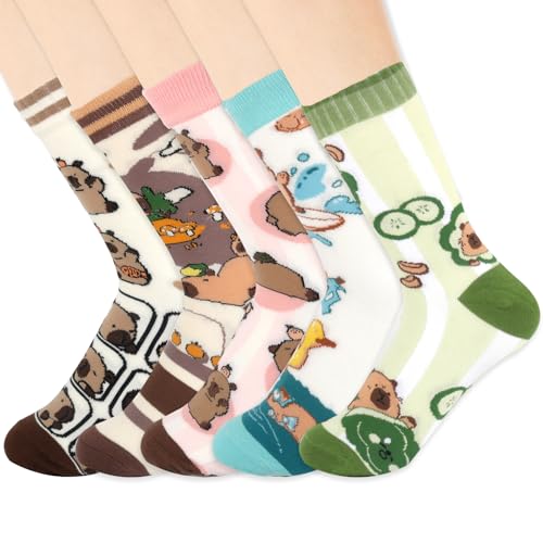 Capybara socken kinder damen frauen 5 paar 34-42 lustige socken motiv tier bunt wasserschwein socken witzig baumwolle weihnachten socken lustig funny socks cute capybara sachen süß geschenk