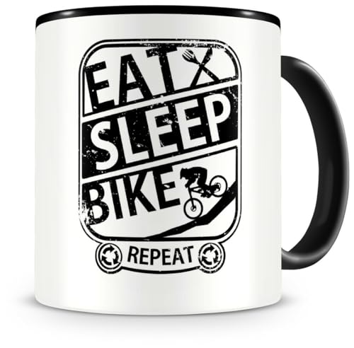 Mountainbike downhill tasse mit spruch eat sleep bike repeat geschenk kaffeetasse groß lustige tassen zum geburtstag schwarz 300ml