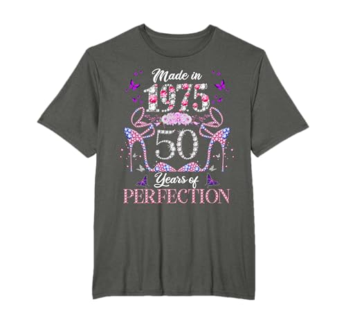 Die beste Website zum Erwerb von 50th birthday queen made in 1975 diamond 50 years old floral t-shirt befindet sich derzeit auf der Website von Amazon
