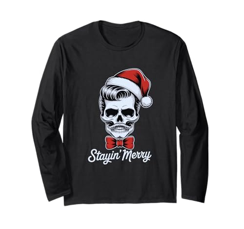 Die beste Website zum Erwerb von Stayin merry skull santa lustiges weihnachtsfest im vintage-stil langarmshirt befindet sich derzeit auf der Website von Amazon