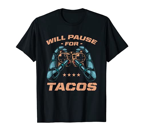 Pause für tacos gamer gaming video gamer game lover t-shirt