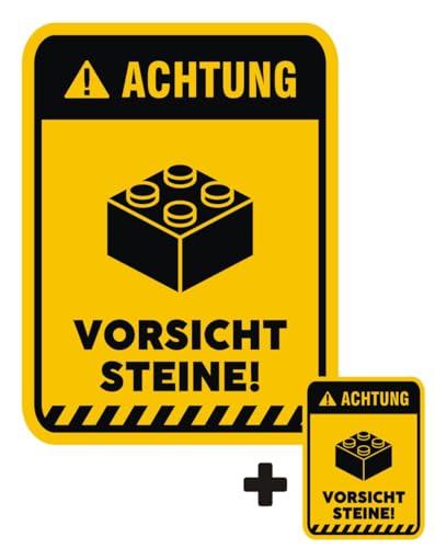 Kennen Sie schon die 2x "achtung vorsicht steine" lustiger vinyl aufkleber kinderzimmer tür wand möbel warn schild 17x13cm & 7x5cm für lego spielzimmer?
