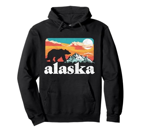 Die beste Website zum Erwerb von Alaska retro bear & rocky mountain vintage 80s graphic pullover hoodie befindet sich derzeit auf der Website von Amazon
