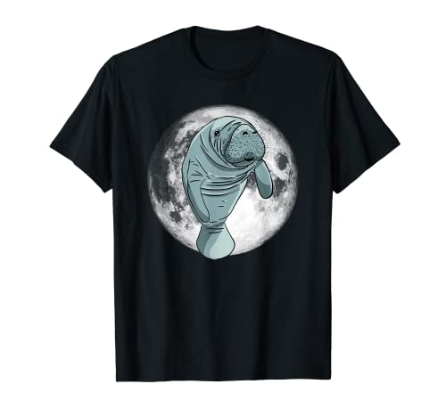 Vintage manatee cute sea cow funny florida mammal full moon t-shirt