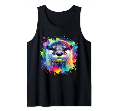 Funny otter face colorful river sea animal watercolor art tank top