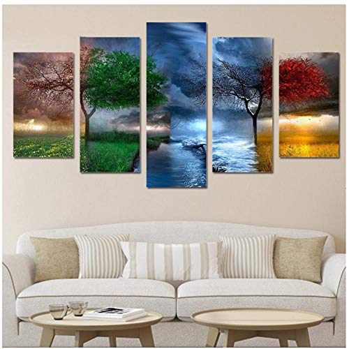 Encadré abstrait moderne décor à la maison toile 5 panneau arbre paysage imprimer peinture mur art photo pour salon modulaire photo-20x35cmx2/20x45cmx2/20x55cmx1