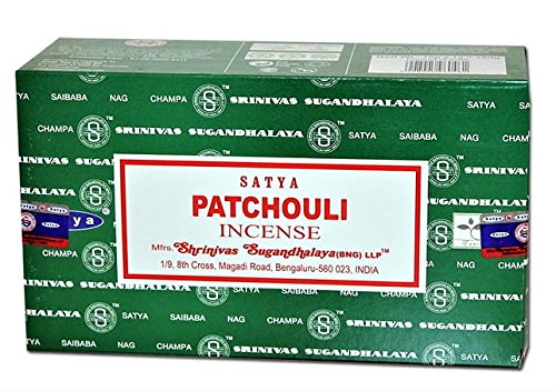 Satya lot de 12 boîtes de 15 g d'encens parfum patchouli