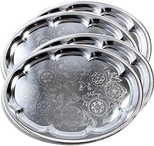 Lot de 4 46 cm x 34 cm plateau de service en métal chromé avec motif de fleurs ovale gravé traiteur gravé plateau de service plateau grand t225-4pk