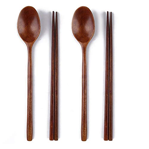 Ecloud shop woden les baguettes cuillère fixe coréens combinaisons de vaisselle 2pcs