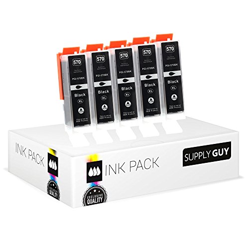 5 cartouches d'encre avec puce compatible avec canon pgi-570 pgbk noir grande pour pixma mg-5750 mg-5751 mg-6850 mg-7750 ts-5050 ts-5055 ts-6050 ts-8050 ts-9050 ts-9055 et plus