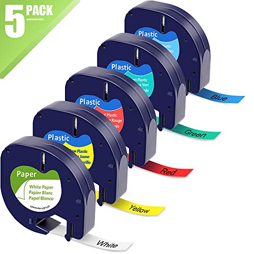 5x markfield ruban compatible pour dymo letratag plastique étiquettes papier ruban 12mm x 4m