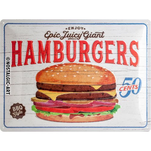 Le prix de vente de 23240 plaque vintage usa hamburgers idée de cadeau pour les amateurs de dîner est resté stable à ces derniers temps, il n\'y a pas eu de changement. En ce qui concerne les offres sur ce produit de nostalgic-art, le prix de est similaire dans tous les magasins du réseau, sans grandes différences.