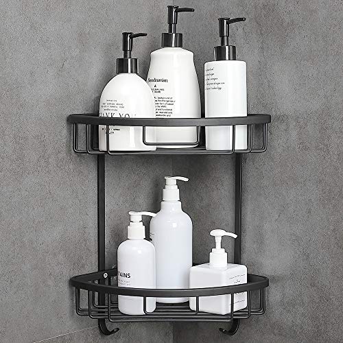 étagère d'angle douche salle de bains argenté serviteur douche organiseur douche pose murale sans perçage auto-adhésif 2 niveaux noir