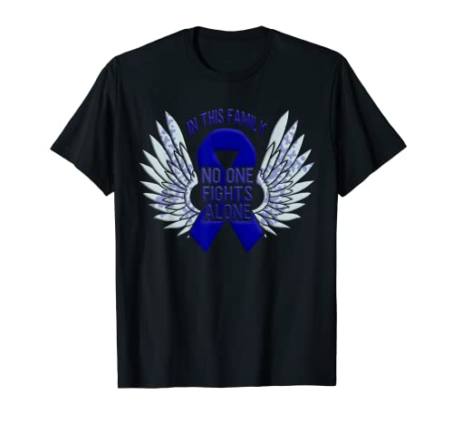I wear blue ribbon support famille de sensibilisation au cancer du côlon t-shirt