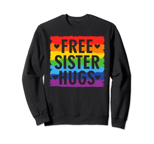 Lgbt rainbow flag proud free sister hugs pride love heart sweatshirt