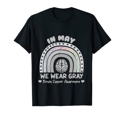 Rainbow in may we wear grey brain cancer mois de sensibilisation au cancer du cerveau t-shirt