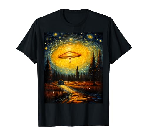 À l\'heure actuelle, le vendeur ayant la disponibilité d\'acheter Funny paint alien ufo lover starry night alien ufo van gogh t-shirt est Amazon