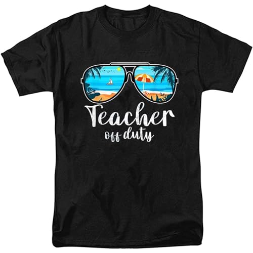 Teacher off duty sunglasses palm tree beach t-shirt funny tee gift tfor men size xl