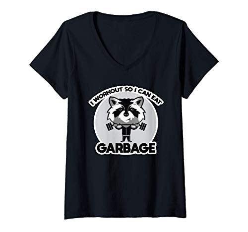 Femme trash raton laveur chats mange des ordures entraînement t-shirt avec col en v