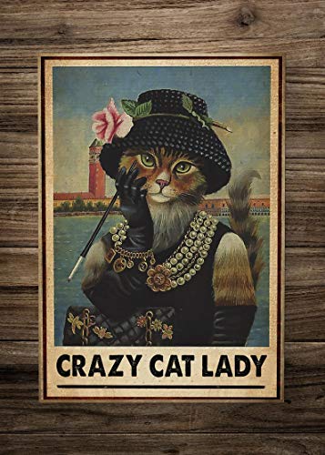 Poster mural en métal avec inscription « yes i am the crazy cat lady » pour la décoration de la maison