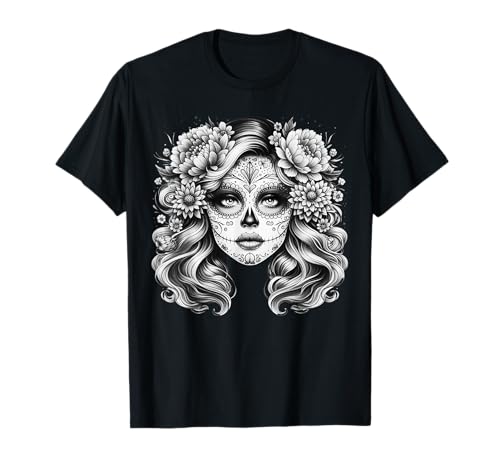 Catherina day floral sugar skull day of the dead los muertos t-shirt