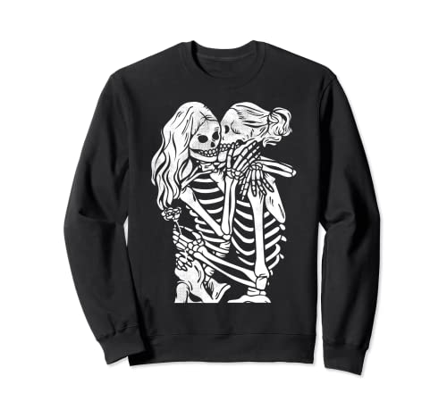 Lesbian lgbtq femme squelettes rose miel lovers kissing sweatshirt