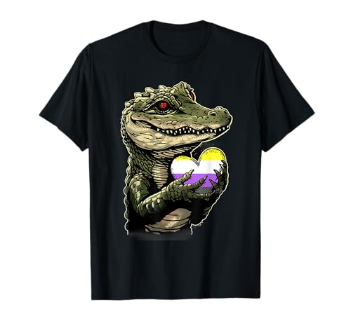 Drapeau non binaire en forme de cœur crocodile t-shirt
