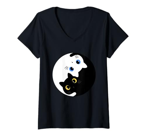 Pour le moment, le meilleur site Web à acquérir Femme yin yang yoga zen chats mignons cadeau yoga kitty chats t-shirt avec col en v se trouve sur le site Web de Amazon.
