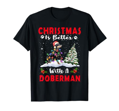 Christmas is better with a doberman dog xmas puppy lover t-shirt