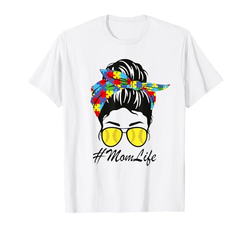 Autism mom softball chignon désordonné sensibilisation à l'autisme t-shirt