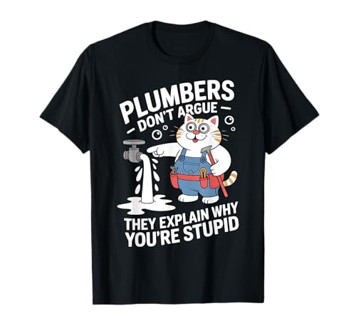 Plumber cat funny plumbers don't argue humour dad plumbing t-shirt