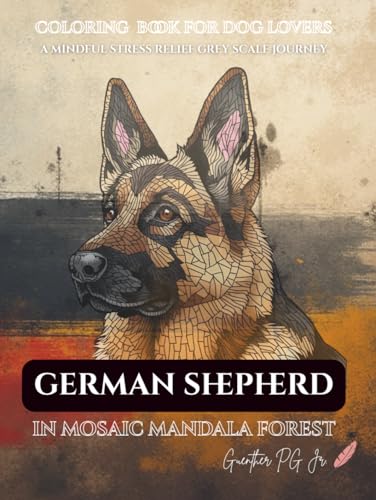 Coloring book for dog lovers german shepherd in mosaic mandala forest: a mindful stress relief grey scale journey