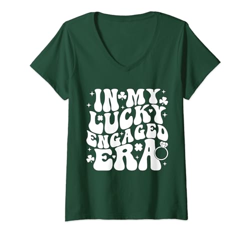 Ces jours-ci le magasin où vous pouvez trouver Femme in my lucky engaged era groovy shamrock st patrick day t-shirt avec col en v est le magasin Amazon