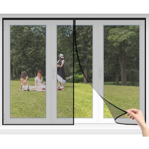 Rideaux toile insect ecran 260x280cm noir moustiquaire de porte magnétique montage par sans perçage fermeture automatique pour fenêtre d’entrée balcon fenêtres respirable maille ultra résistante