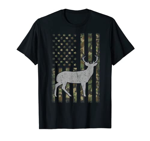 Camouflage drapeau américain chasse cerf t-shirt