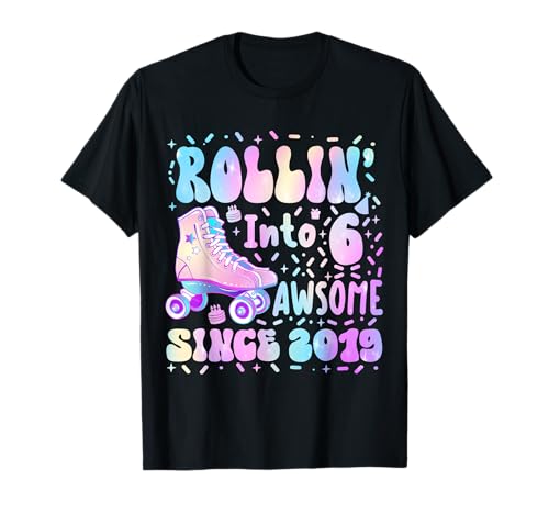 Roller skating 6ème anniversaire rolling into 6 since 2019 girls t-shirt