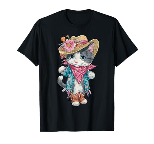 Chat cow-boy amusant country western vintage cowgirl t-shirt