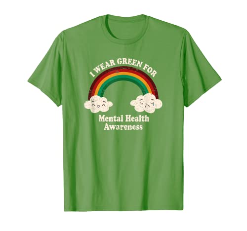 Je porte du vert pour la sensibilisation à la santé mentale 2023 retro rainbow t-shirt