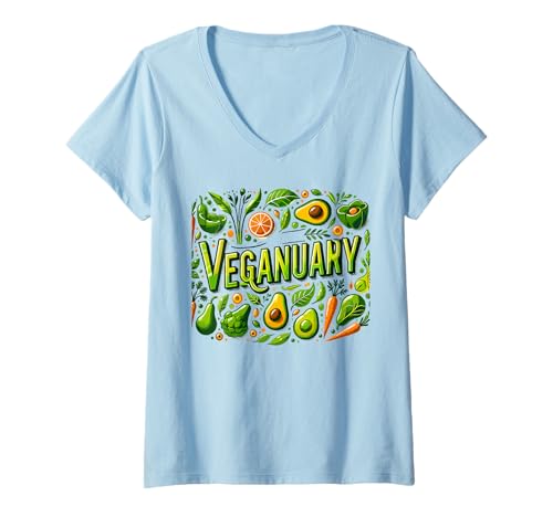 Connaissez-vous déjà le Femme cadeau vegan veganuary mois des véganes alimentation végane t-shirt avec col en v?