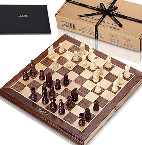 Genuine jaques chess set with folding walnut and sycamore inlaid chess board & case