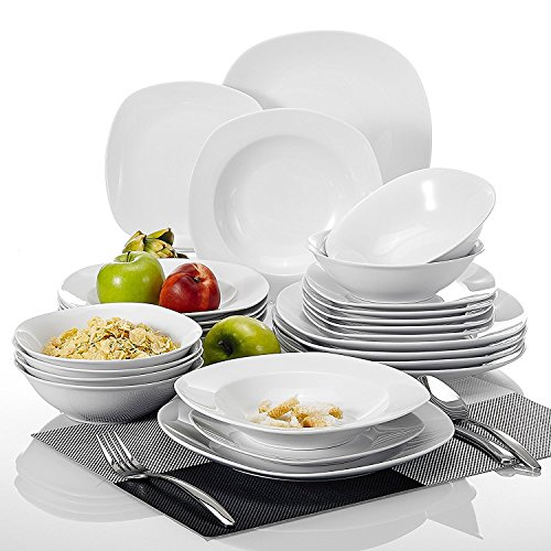 24-piece dinner sets ivory white porcelain dinnerware set with 6-piece 6.7" cereal bowls