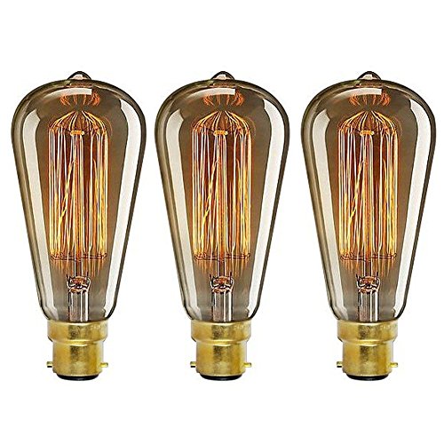 Pack of 3 vintage edison light bulb bc b22 bayonet 40w retro decorative filament light bulb dimmable