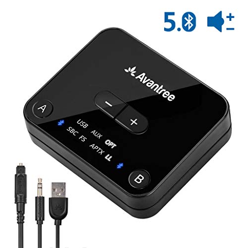 [2020 New Version] Avantree Audikast Plus Bluetooth 5.0 Transmitter for TV PC with Volume Control, aptX Low Latency Wireless Audio Adapter for 2 Headphones, 100ft Long Range