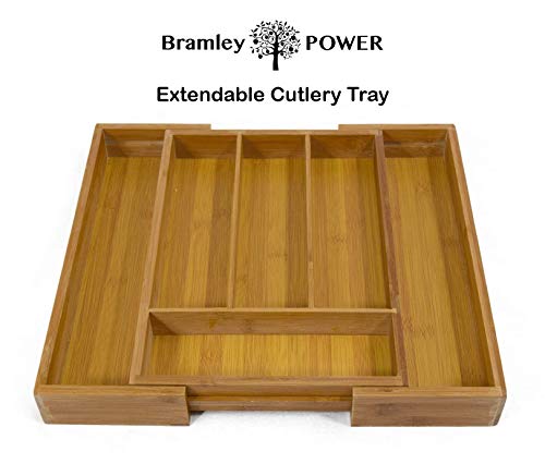 Bramley power extendable expanding adjustable bamboo wood cutlery tray drawer