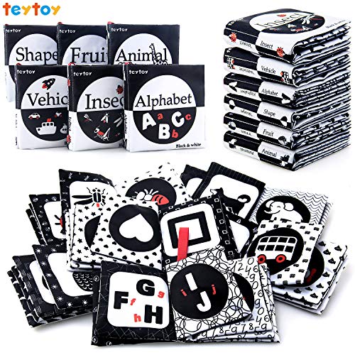 Nontoxic fabric baby cloth activity crinkle soft black and white books for infants boys and girls early educational toys perfect for baby shower -pack of 6
