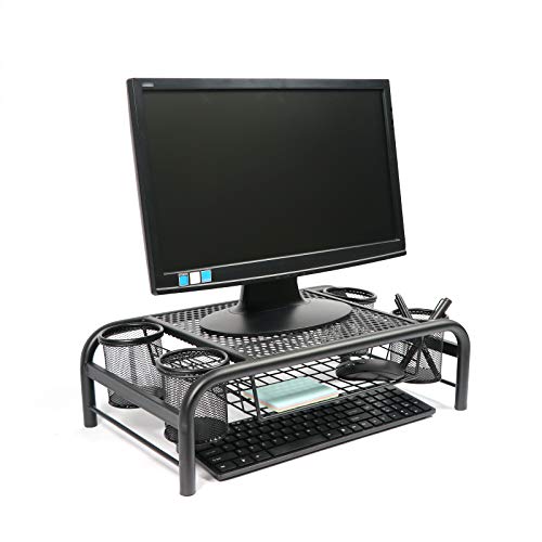 You already know the H-504 extra large black mesh metal monitor stands printer holder organiser riser with drawer and 4 side pens compartments containers for desktop?